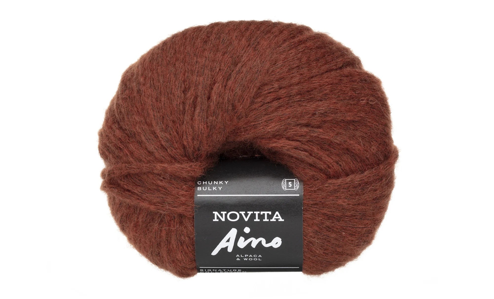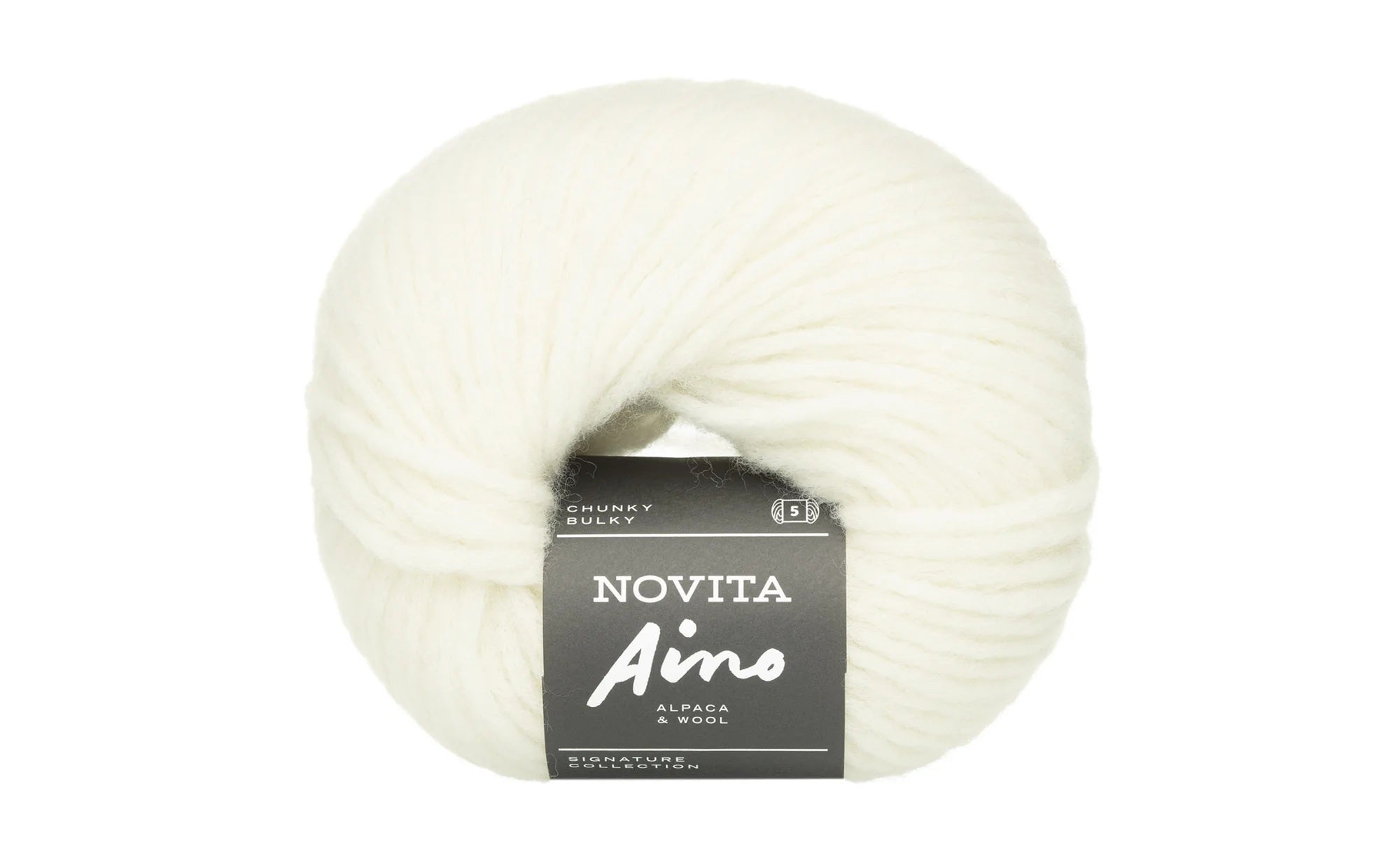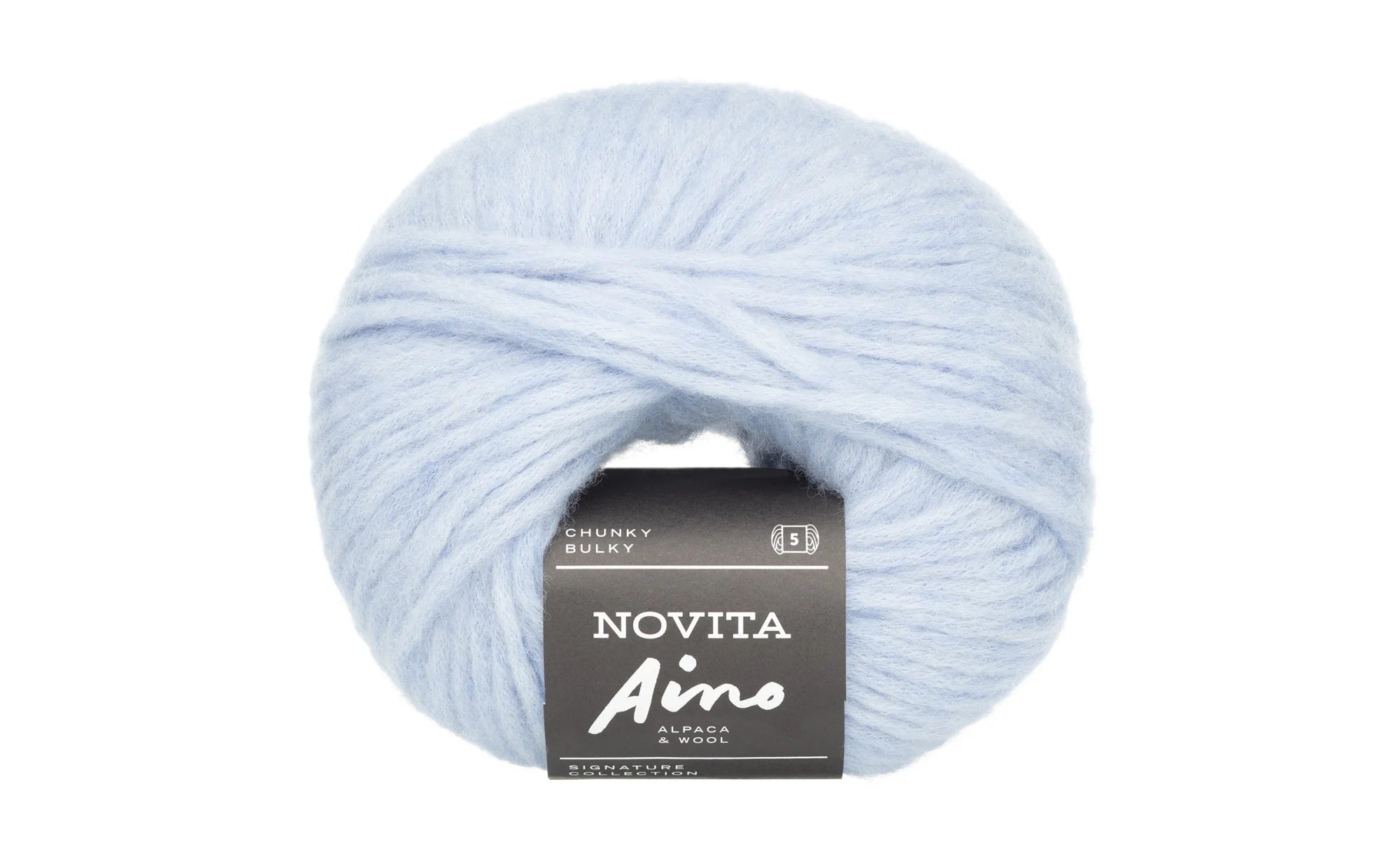 Novita Aino is a delightfully soft and lightweight yarn. Made with blown wool technology, it blends 55% baby alpaca, 23% merino wool, and 22% recycled polyamide. The airy structure keeps it light and warm, making it perfect for various projects including lace and cables. Compatible with any chunky-weight pattern, Novita Aino combines softness, volume, and style.