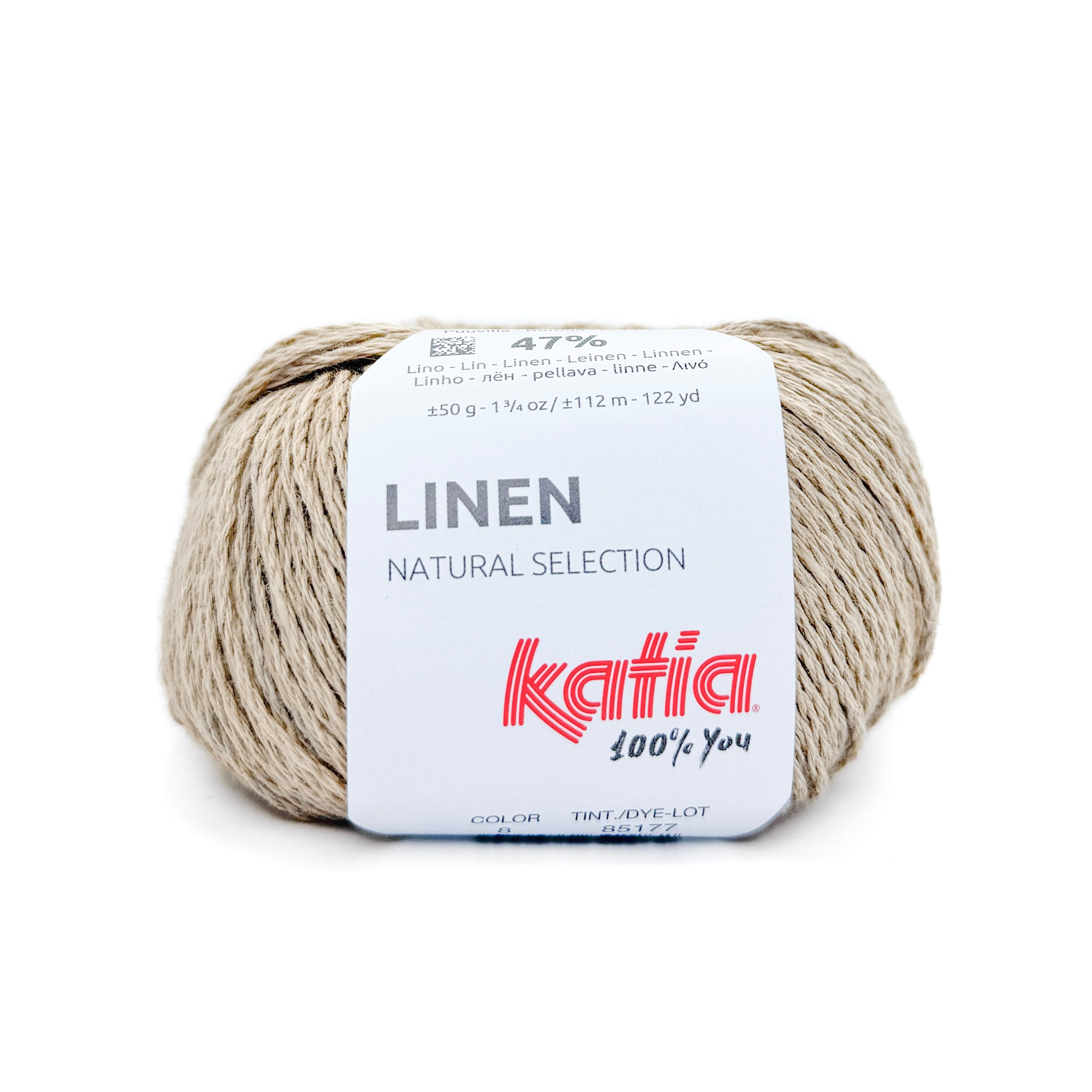 Experience the harmony of linen and cotton in this beautifully blended Linen yarn from Katia. This dk-weight yarn is light and breathable, perfect for soft summer garments, shawls, and accessories.