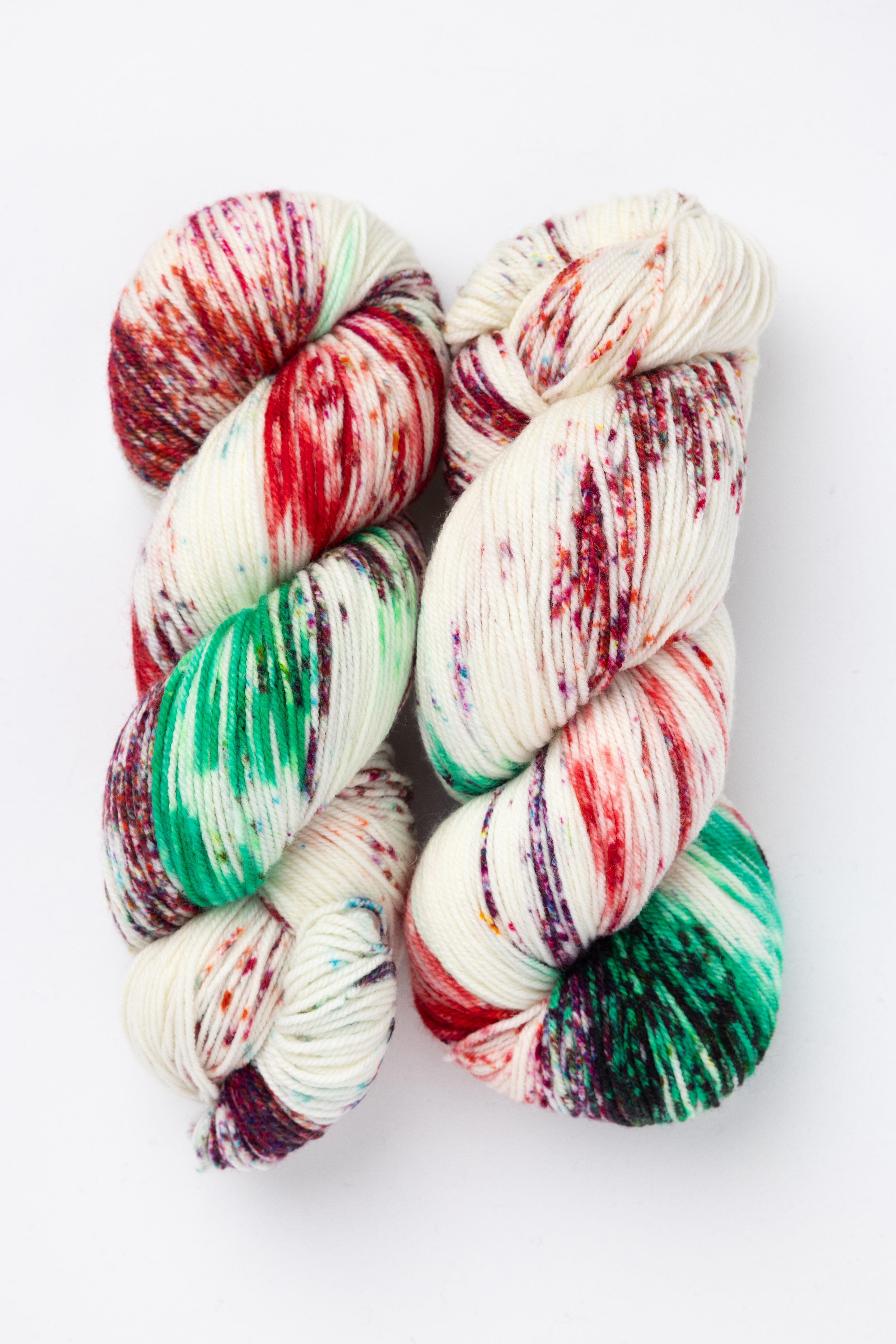 One of the Beehive staff favourites! A 3ply superwash Merino/nylon blend that has a smooth, springy hand. Socknado has a lovely bounce at either sock gauge or on a larger needle for accessories. Hand-dyed in Calgary, Alberta, skeins are available in either variegated or tonal colourways.