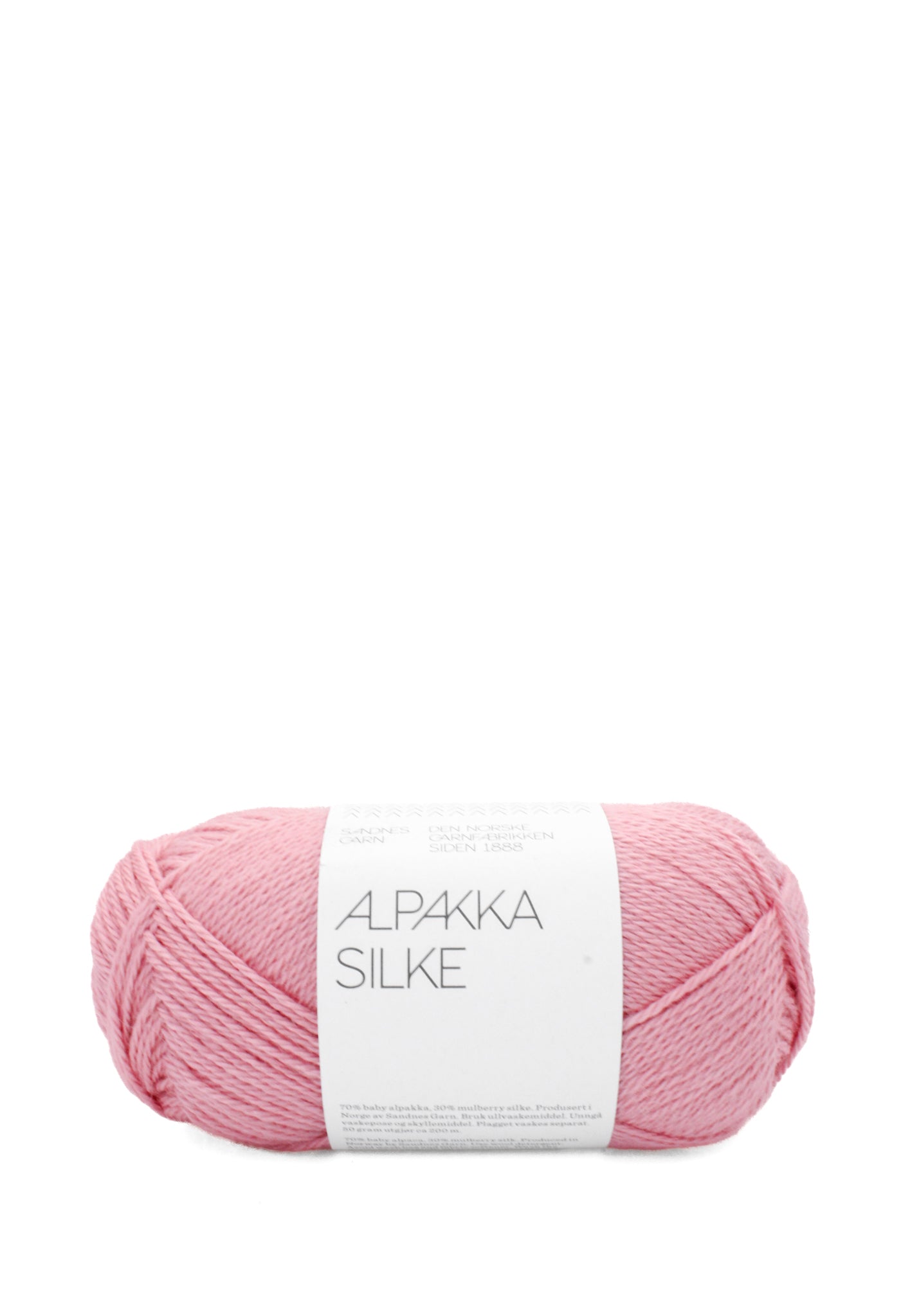 Alpakka Silke combines high-grade baby alpaca and mulberry silk for a has light, ultra-soft yarn with shine and drape. Fine enough to pair with a mohair, yet perfect on it's own for a delicate garment or accessory. Combine with matching colourways in other Sandnes Garn yarns such as Tynn Silk Mohair.