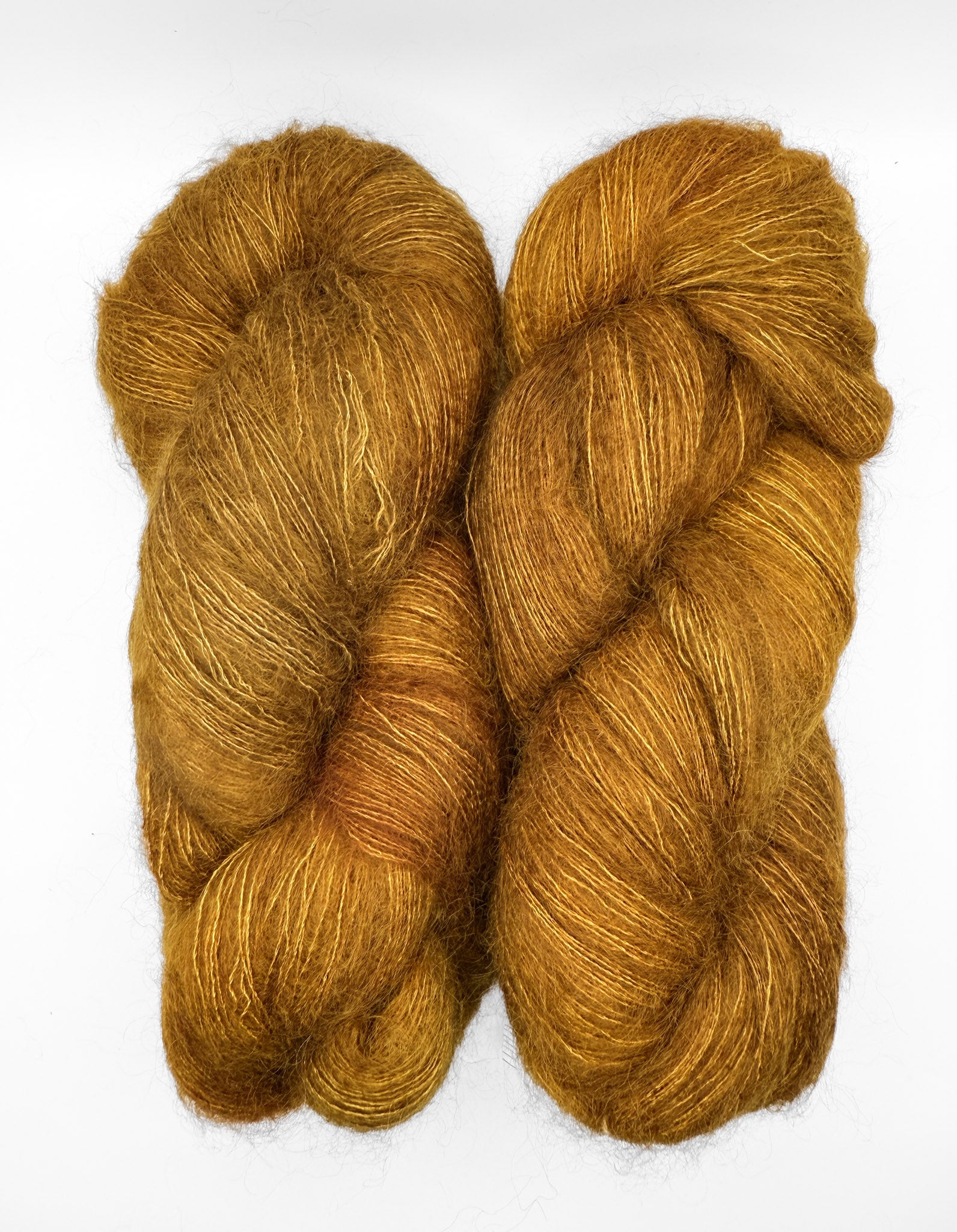Incredible yardage, haze, and lustre in one skein. A brilliant strand of silk is spun with the highest grade quality of kid mohair available. Available in colourways ranging from subtle tonal shifts to vibrant variegation. Stunning knit alone or held together with another yarn to product a gentle halo. Dyed by Hand Maiden in Halifax, Nova Scotia.