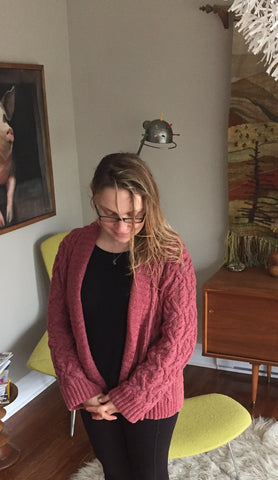 This is the Ilia cardigan (pattern by Michelle Wang) knitted with Brooklyn Tweed