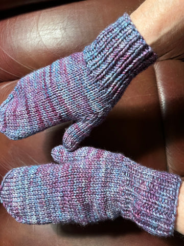 The pattern is from Saltwater Mittens using Malabrigo Matisse Blue & Natural.