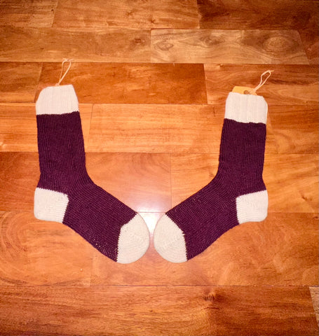 Pattern:Steve sport wool sock. Yarn: The Farmer in berries and Ecru
