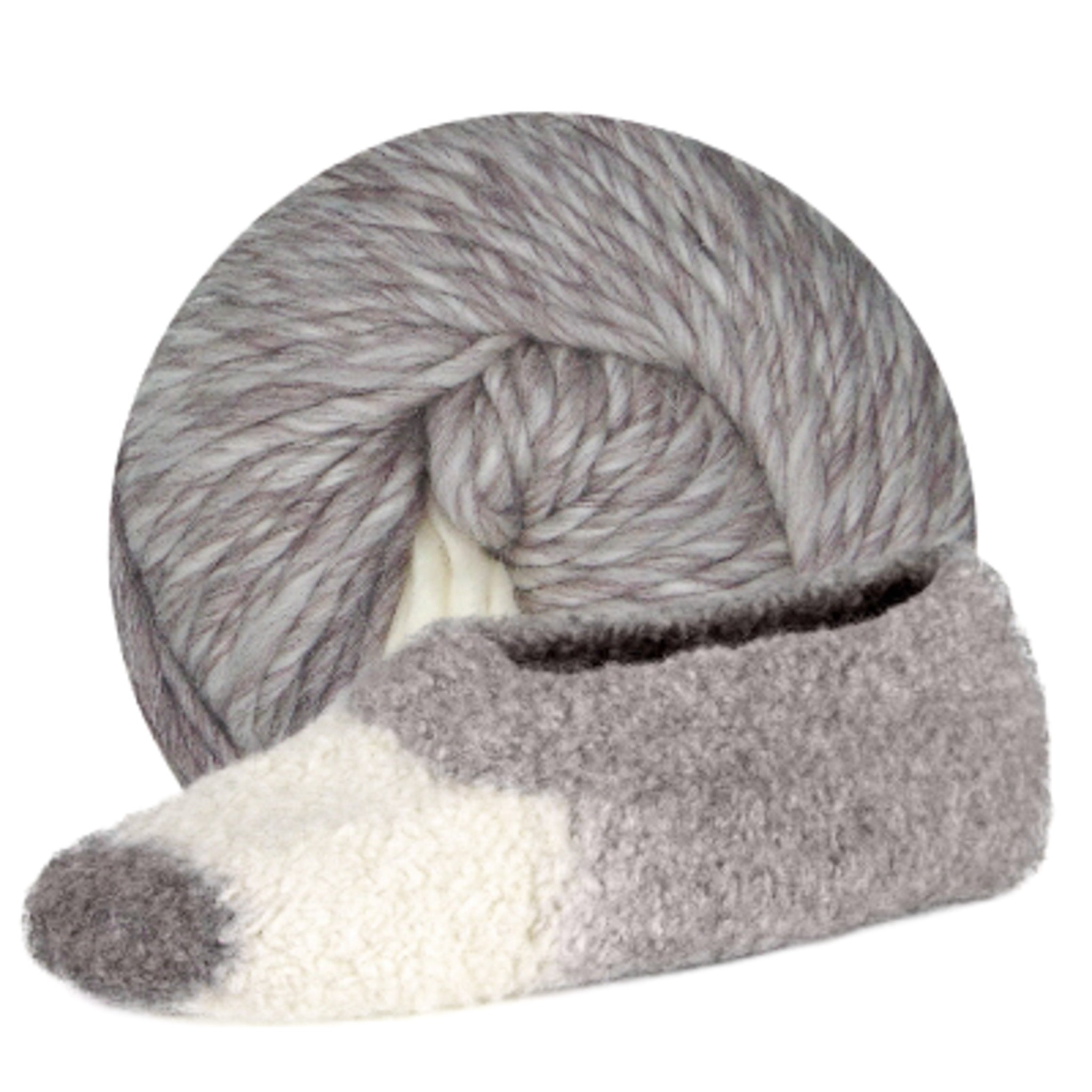 With Slipper, you can knit a matching pair of slippers from one ball of yarn. Each ball contains two repeats of a colour transition that makes a contrasting toe and foot, followed by a blend of the two shades for the heel and cuff. When the slippers are completed, simply felt them in the washing machine to create the perfect pair.