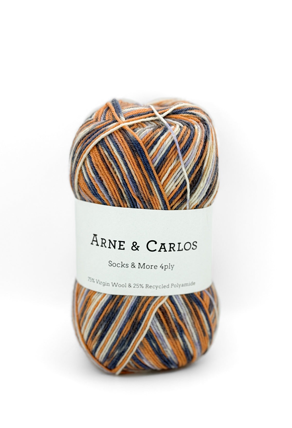 Now under their own brand name, Arne & Carlos have a new collection of sock yarn. These yarns are made with a colour changing effect that results in a pair of socks with an Arne & Carlos iconic design.
